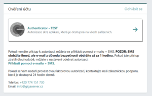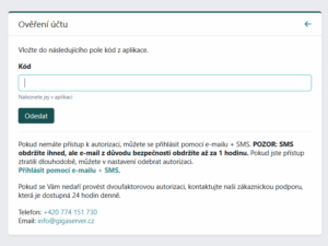 Po úspěšném přidání budete při každém přihlášení do klientské sekce vyzváni k zadání aktuálního kódu z autorizační aplikace. V první části můžete vidět vytvořené ověření, které se skládá z názvu: autorizační aplikace a popisu, který jste při vytváření zadali.