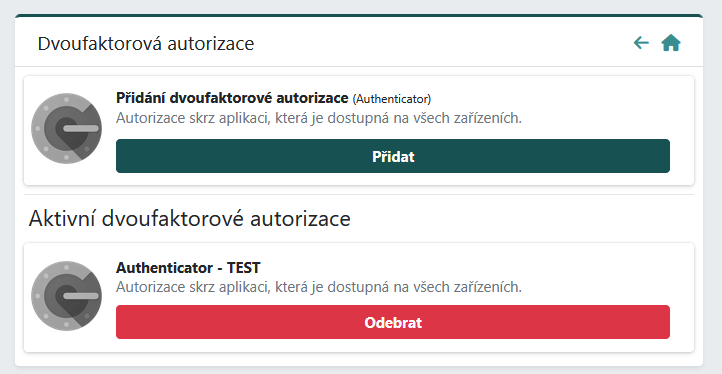 INFO: Každá autorizace je vázaná na konkrétní zařízení a autorizační aplikaci. Při výměně zařízení je nutné autorizaci přidat pro nové zařízení, případně při ztrátě zařízení původní autorizaci odebrat.